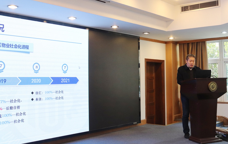 后勤保障处副处长张善得汇报了物业管理相关工作。他首先介绍了我校物业管理服务的基本情况、工作重点和特色亮点,并梳理了目前物业工作中存在的问题和不足。他指出,目前学校物业服务监管体系尚未建立健全,全面监管尚有缺失,现有基础物业服务水平尚有差距。2022年,要从建立监管制度、强化日常监管、加强员工培训、提升业务本领、规范服务标准、优化服务品质等方面进一步加强对社会物业监管工作。