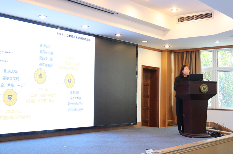 后勤保障处副处长郑军的汇报主题为“推进精细化管理,提升保障服务效能”,主要围绕“以推进精细化管理为突破口,全面提升治理能力和水平”“以强化一线意识为担当,切实回应师生的实际问题”“以助推智慧教学为载体,促进信息技术与教育教学融合”“以加强信息安全为抓手,全方位提升网络安全防范能力”等四个方面展开。2022年,教育技术中心等部门将继续围绕“双优工程”建设,积极回应师生关切的热点问题,扎实推进各项工作开展。